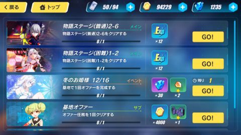 「冬のお姫様」のような期間限定のイベント任務もあるので確認しておきましょう。