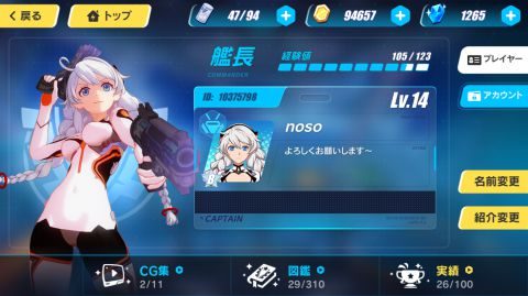 実績はホーム画面上部でプレイヤーの名前をタップしてプレイヤーの詳細画面に移動し、フッターの「実績」から移動できます。
