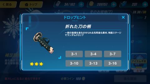 ▲星3の聖痕の汎用進化素材は3章でドロップします。