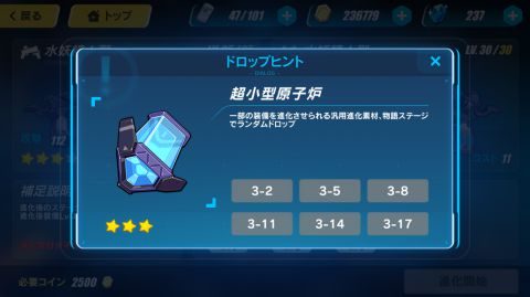 ▲星3の武器の汎用進化素材は3章でドロップします。