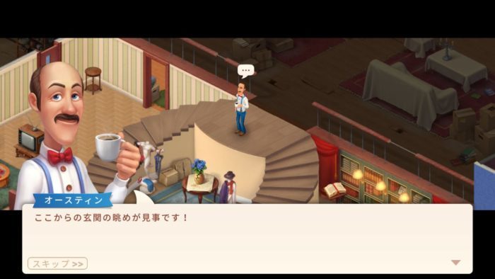 ホームスケイプはガーデンスケイプを提供するPlayrix Gamesの新作パズルゲームで、執事オースティンがあちこちボロボロになった屋敷をパズルをクリアしながら綺麗にしていくゲームです。