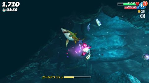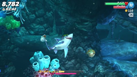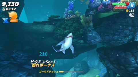 最初は捕食できない獲物も大きなサメを使えば捕食可能になったりするので、遊べば遊ぶほどにもっと大きなサメで豪快に捕食したい衝動に駆られるでしょうw