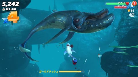 前作の「ハングリーシャーク エボリューション」は全世界で累計2億3000万!もダウンロードされた超大人気ですが、本作もリリースされてすぐに無料DLの上位をキープしているので、前作からのファンも多そうです。