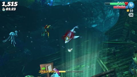 群れで泳いでいる魚を、一匹残らず捕食するとボーナス!
