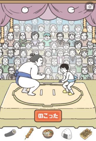 5つの食事を全て主人公に食べさせると巨大化するので「のこった」を押せば力士に勝てます。