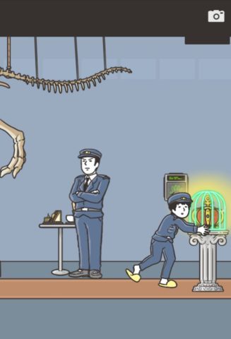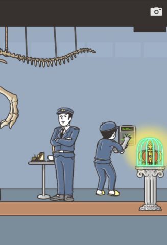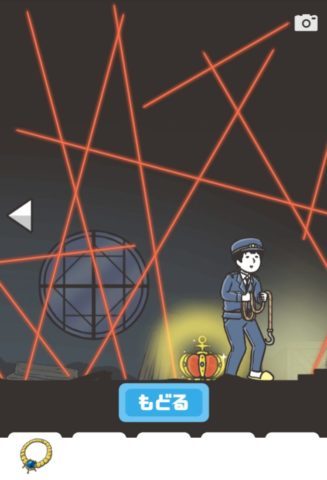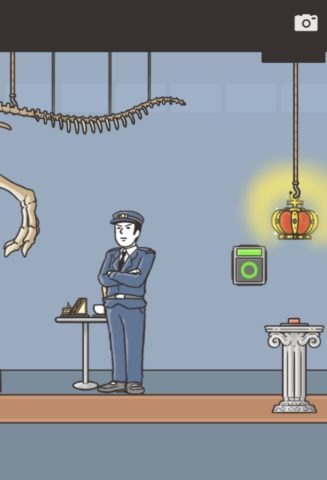 警備服に着替え、女神の像のネックレスを手に入れて進み、王冠のセンサーの前で警備員をタップすれば達成です。