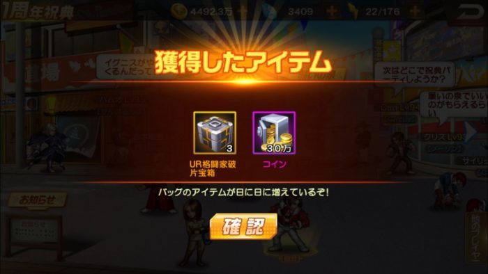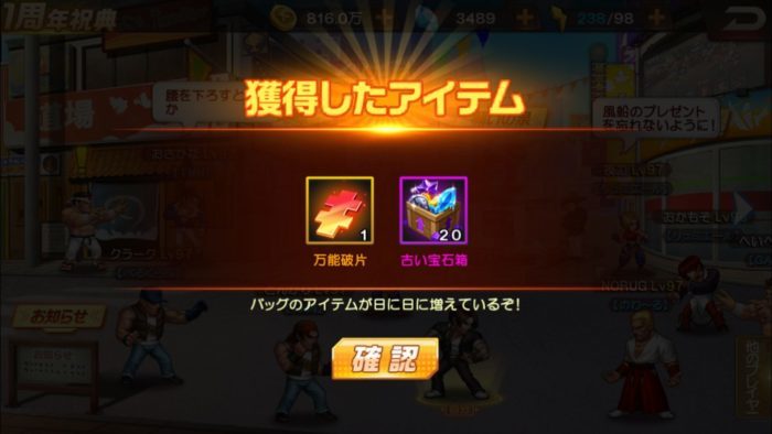 体力訓練は3回の戦闘を行い、すべて勝利したら「万能破片」と「古い宝石箱」がもらえました。
