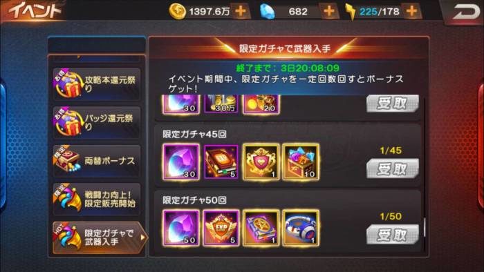 限定ガチャの回数に応じてクーラの装備覚醒素材(バッジ・攻略本)やメイ・リーの武器覚醒素材がもらえます。