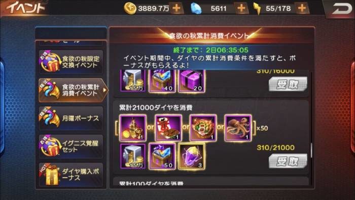 期間中のダイヤの累計消費で手に入りにくいネスツやボスの紫グルメがもらえます。