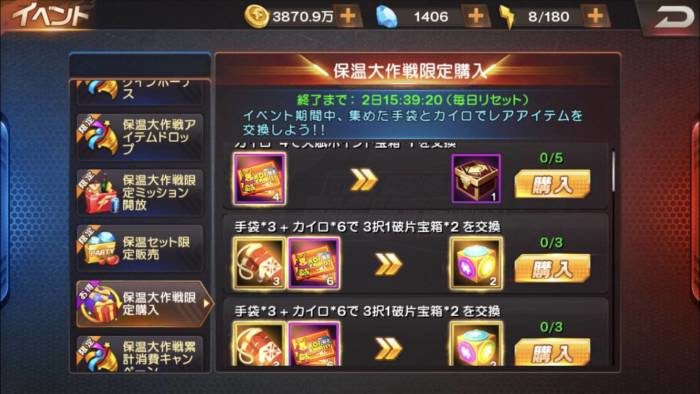 「保温大作戦」は「手袋」と「カイロ」を集めてアイテムと交換する毎月恒例の月初イベントです。