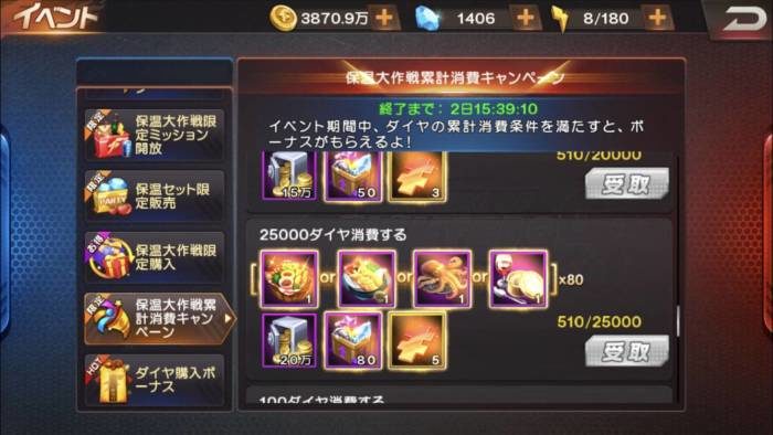 - 保温大作戦限定ミッション(日ごとにリセット)
