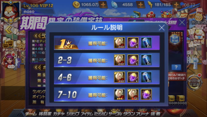 ランキング報酬の内容は↓の通りです。(経験ドリンクは割愛)