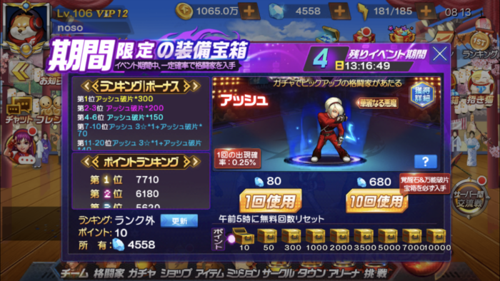 アッシュは海外版でも人気の強キャラなので、今回のガチャも引く方は多そうです。