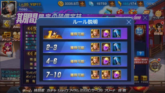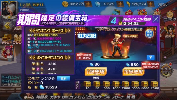 | 10 | 装備破片宝箱×5 紅丸2003の破片×2 6万コイン |