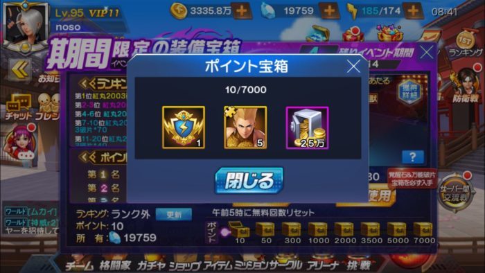 5000ポイントと7000ポイントのポイント宝箱からは紅丸2003の装備覚醒素材である「美男子バッジ」と「拳闘攻略本」がもらえます。