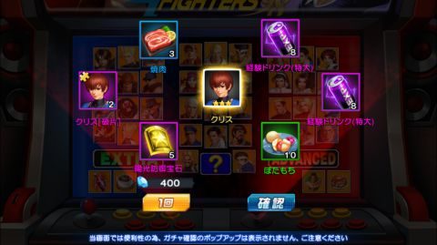 テリーの限定ガチャでもそうでしたが、ダイヤガチャとは違って6つのアイテムと運が良ければキャラクターが出現します。