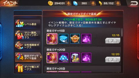 限定ガチャは400ダイヤとダイヤガチャに比べて高額なので、無理のない範囲で楽しみましょう。