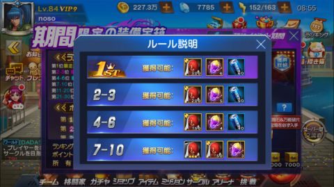 | 10 | 装備破片宝箱×5 覚醒石×1 6万コイン |