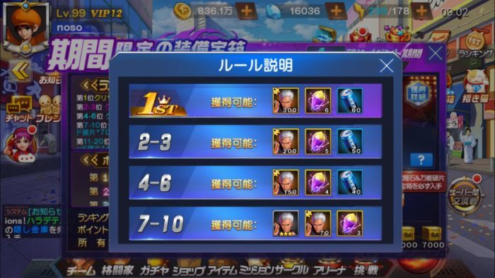 報酬は30位までしかもらえませんが、いつも通り内容が豪華なのでかなり激しい順位争いになりそうです。