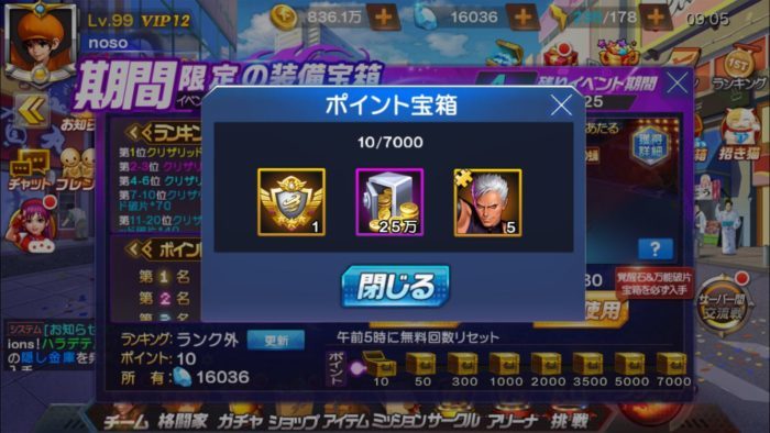 5000ポイントと7000ポイントのポイント宝箱からはイグニスの装備覚醒素材である「疾風バッジ」と「格闘攻略本」がもらえます。