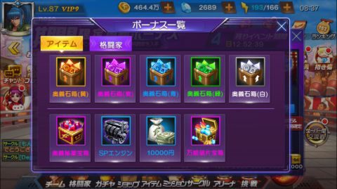 サーバー1~84では奥義石ガチャとなりますが、奥義石箱はチームレベル66にならないと使用できないため、サーバー85以降では装備宝箱ガチャとなります。