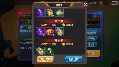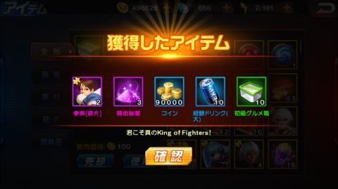 幸運の宝箱からは「拳崇の破片」と「大門の破片」、他にも闘志秘薬、グルメ箱、経験ドリンク、コインなどが手に入ります。