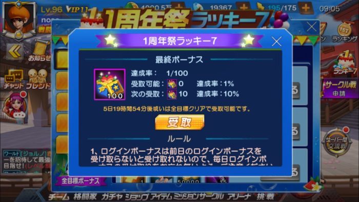 最終日に最終ボーナスの1周年記念宝箱を受け取るのをお忘れなく!!