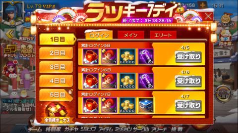 ラッキー7デイでは5日間追加されるミッションを達成することで報酬がもらえます。