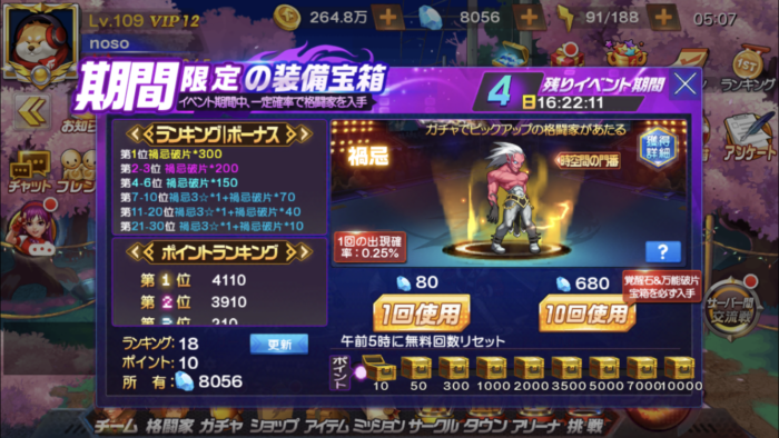 | 7~10位 | 禍忌(星3本体)×1 / 禍忌の破片×70 / 覚醒石×3 |