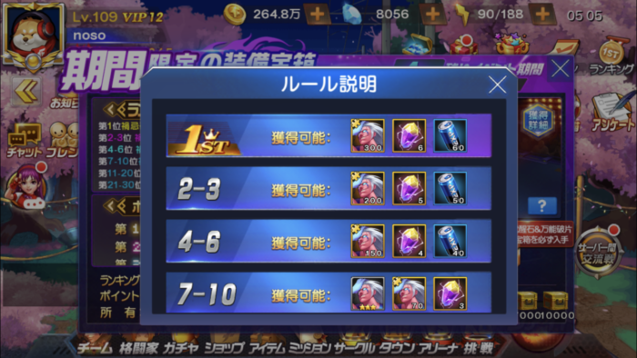 ランキング報酬の内容は↓の通りです。(経験ドリンクは割愛)