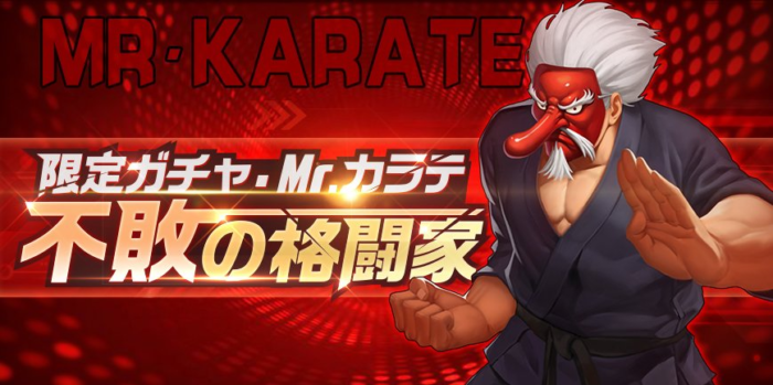 「キングオブファイターズ’98 アルティメットマッチ オンライン」(KOF’98 UM OL)で開催される期間限定の「Mr.カラテ」の限定ガチャについてまとめています。