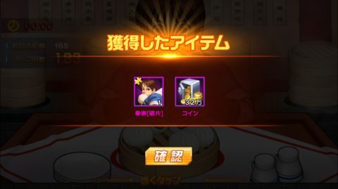 「美味しい肉まん」はホーム画面右上のアイコンから挑戦することができ、制限時間内の画面タップ回数により、「拳崇の破片」とゴールドがもらえます。