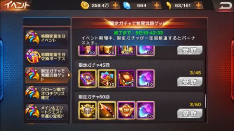 イベントから限定ガチャを回した回数に応じて、「ハイデルン」の破片やオロチクリスの覚醒素材である「烈火攻略本」、「オロチバッジ」などのアイテムがもらえるのでこちらも意識して限定ガチャを回すといいでしょう。