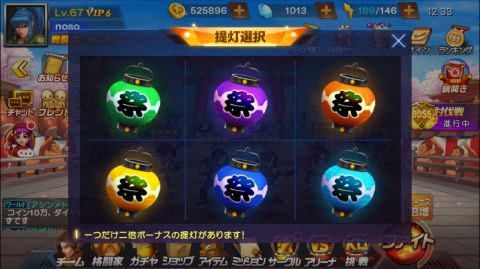 中には1つだけ報酬が2倍もらえる提灯もあり、2倍になる提灯の色は日毎に決まっています。