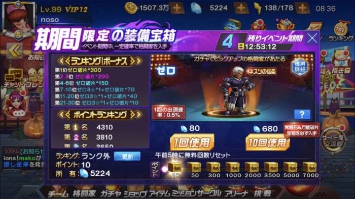 「キングオブファイターズ’98 アルティメットマッチ オンライン」(KOF’98 UM OL)で開催される期間限定の「ゼロ」の限定ガチャについてまとめています。