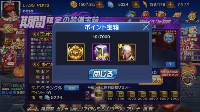 10装備破片宝箱×5 / ゼロの破片×2 / 6万コイン