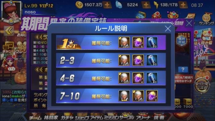 ランキング報酬の内容は↓の通りです。(経験ドリンクは割愛)