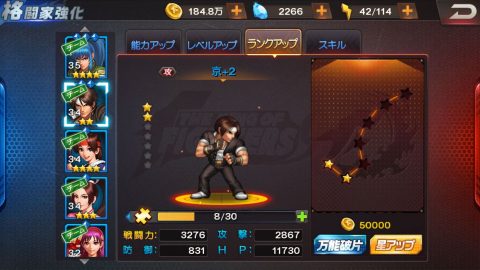 ▲破片を集めればキャラクターをランクアップできます。