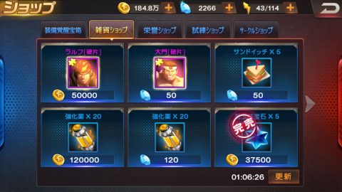 ショップのラインナップは一定間隔で更新され、ダイヤを支払えば時間を待たずに更新することもできます。