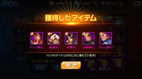 キャラクター毎に決められた数の破片を集めることで、そのキャラクターを入手することができます。