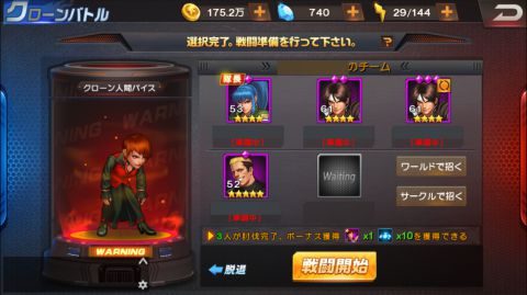 10/13(木)の更新で追加された「クローンチーム戦」は他のプレイヤーとキャラクター(格闘家)を1体ずつ持ち寄って挑むモードです。