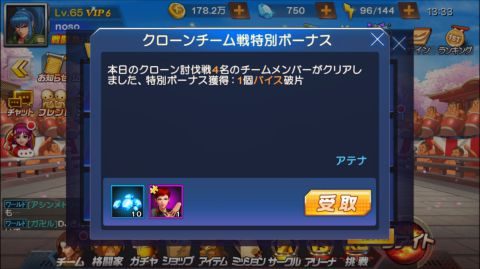 「クローンチーム戦」はキャラクターの破片やダイヤを稼ぐのにオススメのモードです。