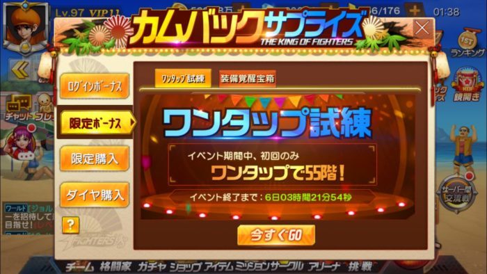 ワンタップ試練は毎日初回のみ究極の試練を55階から挑戦できます。