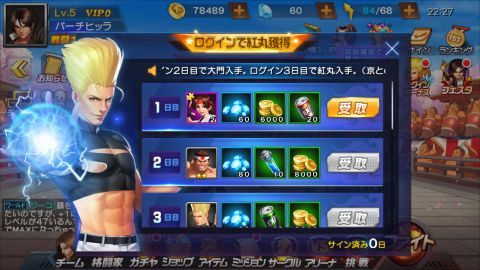ユーザー登録から8日目までのログインボーナスを画面右の「ログインボーナス」から確認できます。