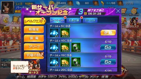 チームレベルやクエストクリア、キャラクターの強化など様々なミッションが用意されているので、意識してゲームを遊ぶと効率的にダイヤを貯めることができます。