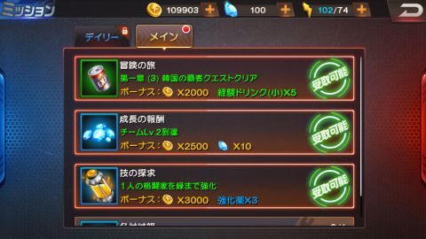 なお、ミッションの「メイン」は初めから解放されていますが、「デイリー」は「メインクエスト 3-3」をクリアすることで開放されます。
