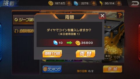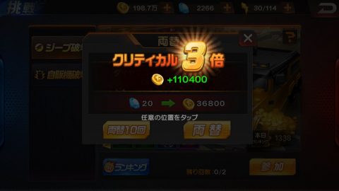 「ジープ破壊」はLv18になるとホーム画面下の「挑戦」から挑むことが出来、クエストよりも効率よくコインを稼ぐことが出来ます。