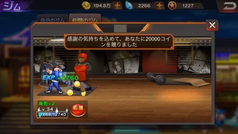 サークルのジムで仲間の訓練を応援すると応援1回につき20000コインもらえます。