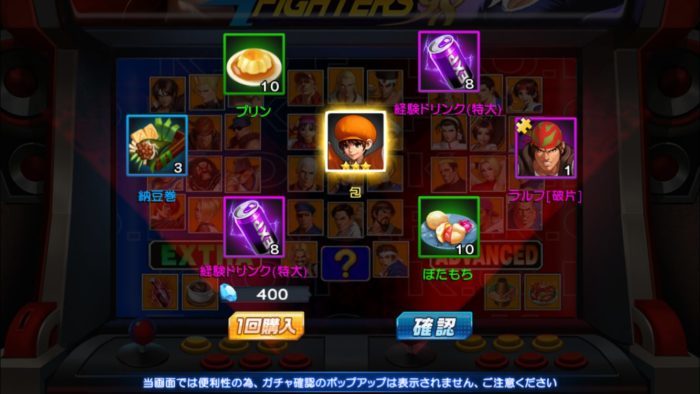 「血の暴走」は1回400ダイヤで引くことができ、月末の限定ガチャとは違って6つのアイテムが出現するタイプのガチャで、当たりの時だけ7つ目にキャラクターが出現します。