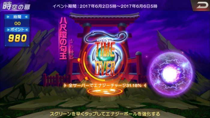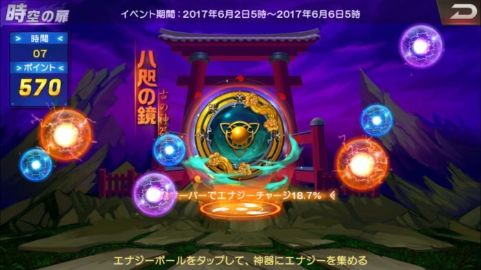 「八咫の鏡」は制限時間エナジーボールをタップすることでスコアを稼ぐミニゲームです。